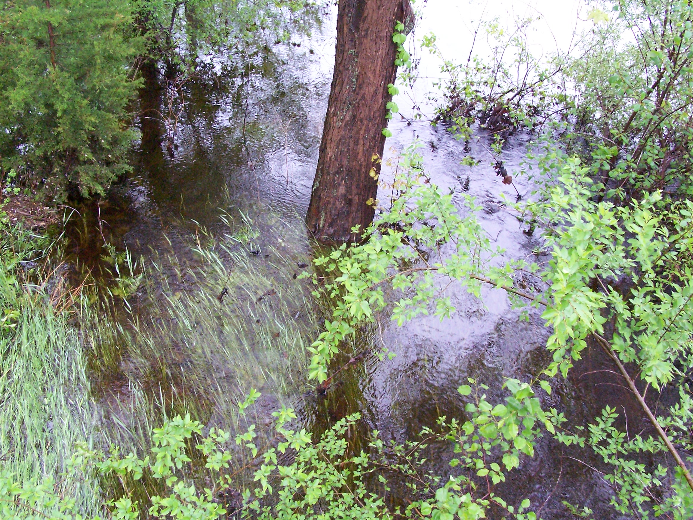 Well, actually, I didn't take any pictures of the real flood. These shots were taken in the parking lot of the Cross Point tower on May 16th. The water was high, but not in any danger of overrunning the creek banks.